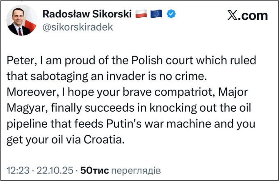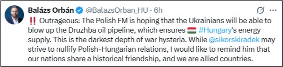 Zweig der Drushba) unterbrochen haben, teilt der Außenminister aus Budapest