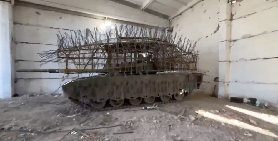 (4): Betrachte mit Muße Schlachtfeldaufnahmen von russischen Kampfpanzern. Es